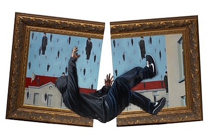 Acrylic, Oil, and Spray Paint on Woodcut and Cement, 28 x 29 in.