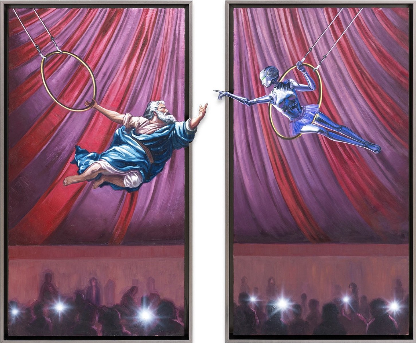 Acrylic, Oil, Spray Paint and Silkscreen on Canvas(s), Head: 18 x 16 inches